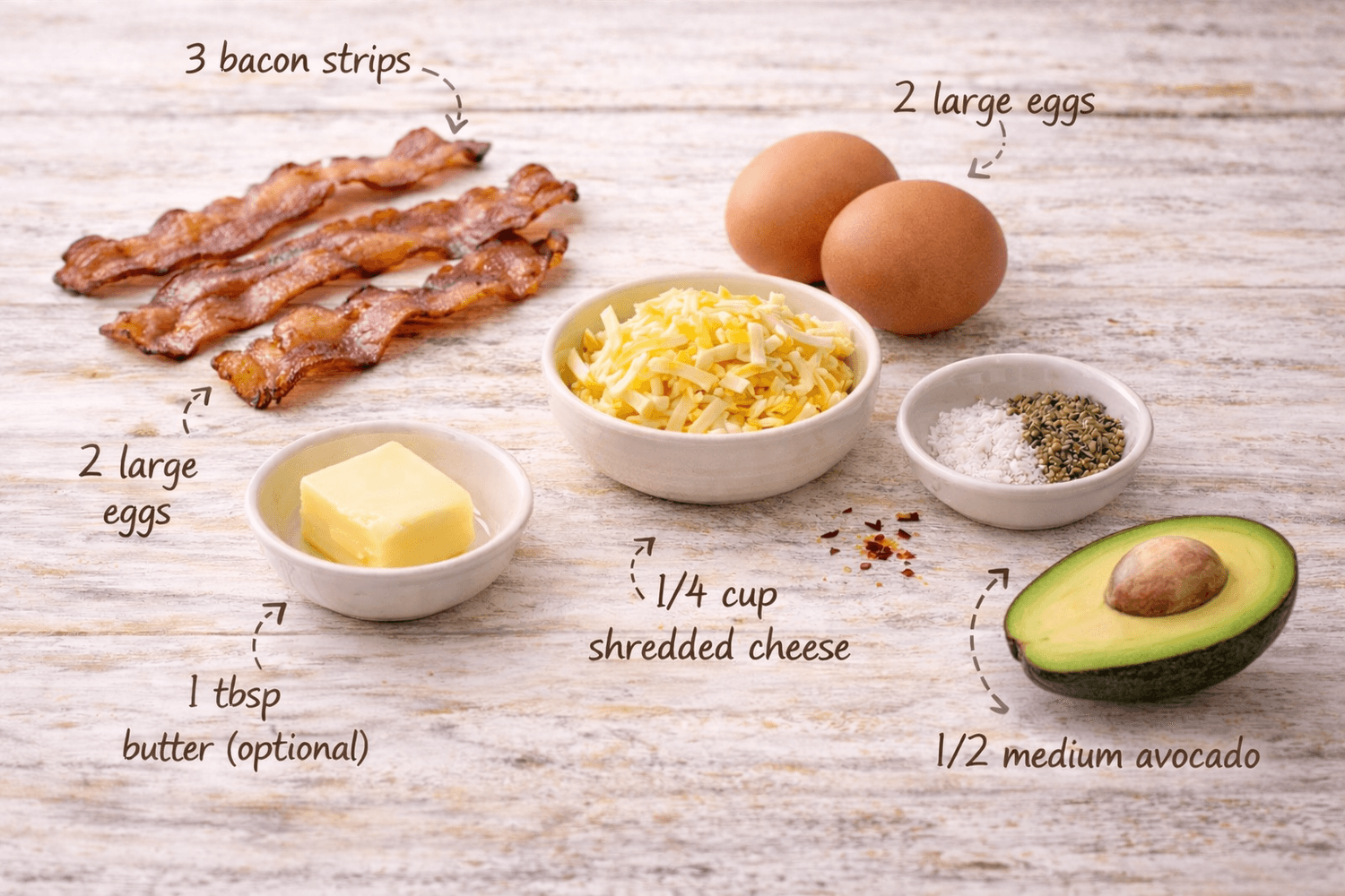 This is the kind of breakfast that keeps you full for hours. With crispy bacon, soft eggs, and melted cheese, it delivers the perfect mix of protein and healthy fats — exactly what you need to stay in ketosis and avoid cravings.