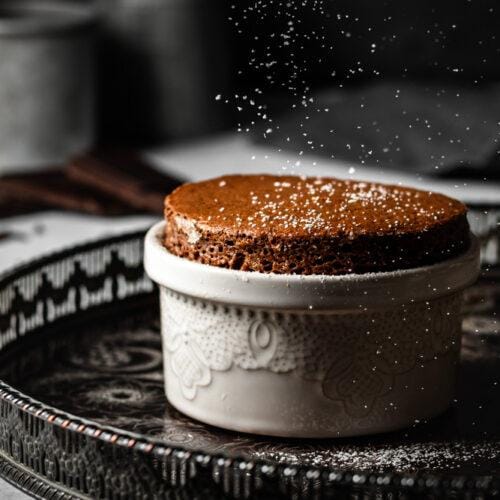 Grease a ramekin with butter so it doesn’t stick and rises well.